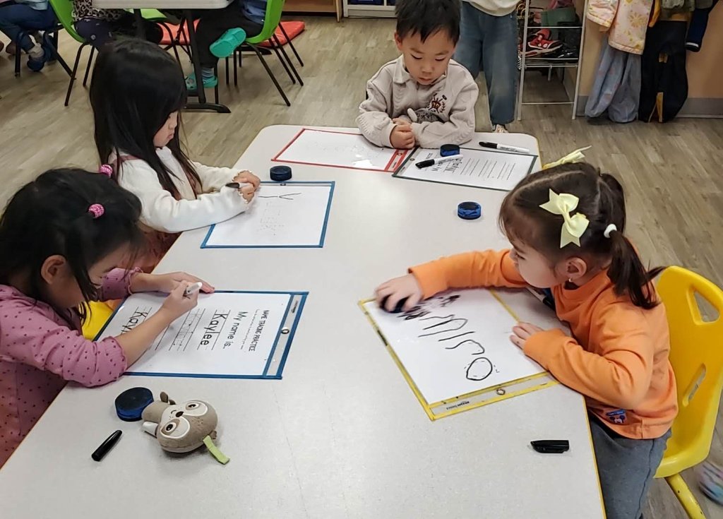 Many of our children speak English as a second language. We help the children in learning to speak English fluently so they will have a better chance at being successful in kindergarten as well as later on in life. Alternately, many families also wish to have their children learn Chinese. We offer a Mandarin program to teach the children who are interested in learning to speak, read and print the Chinese Mandarin language.
